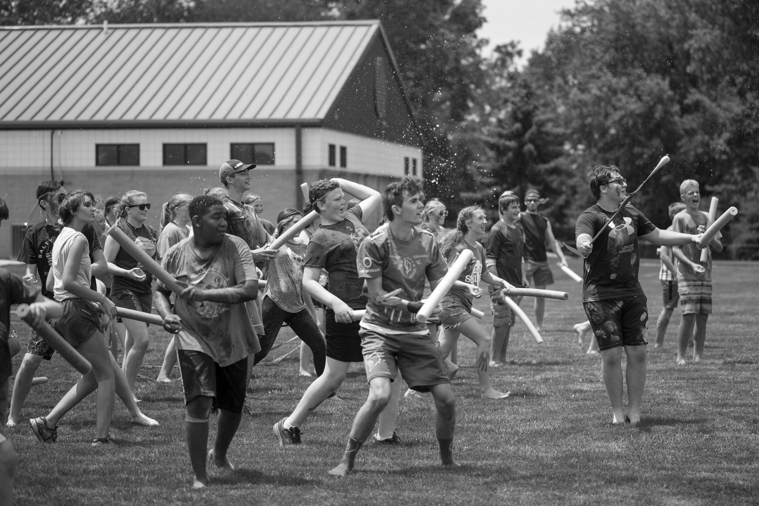 Here’s what you can expect each day: two sessions with worship and teaching, big group games, free time activities (Community Pool, Crafts, Open Gym, 9-Square, etc.), breakout session, small group time, late night options (Sport Tournaments, Silent Disco, Trivia Night, Open Gym, Pizza!) and of course three delicious meals provided by the university. The cafeteria has surprisingly great food and there are always at least 3 or 4 options per meal. One of the highlights of the week is always the “Battle of Helm’s Deep” where campers wage war with pool noodles, water balloons, and cornstarch bombs in a giant game of capture the flag.